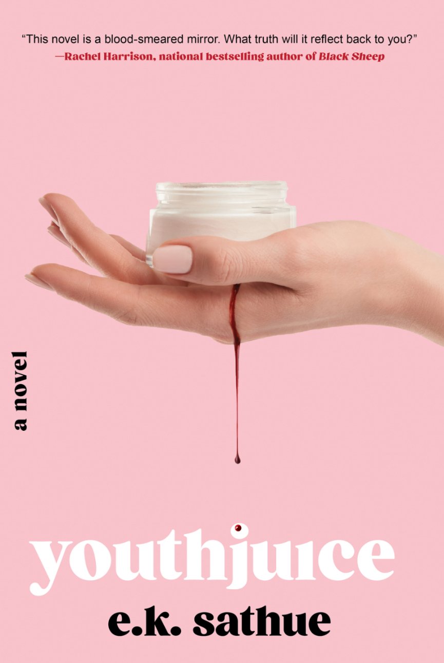 The novel begins with our narrator, Sophie Bannion, who recently becomes a copywriter for a luxury skincare brand HEBE. Sophia becomes obsessed with the company’s lifestyle and magical cream that seems to heal all ailments. However, the cream is made from the sacrificial blood of young women who come to the company as interns and mysteriously disappeared. Sophie’s obsession with her boss Tree- yes Tree- leads her down a path where her boyfriend leaves her, and she kills her flat mate/ only friend Dom. Instead of drinking the Kool-Aid, Sophia slaps on the Youthjuice.